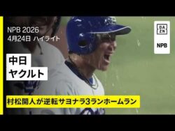 NPB4月24日プロ野球ニュース 大谷翔平 一級品でも一休み!村上宗隆 連発ならずも堅守発揮!鈴木誠也 打球も順位も上昇志向!【巨人】田中将大 3連勝へ!中日・村松、今季第1号逆転サヨナラ3ランホームラン! 1:名無しさん@お腹いっぱい2026.04.25(Sat) This is description4月24日プロ野球ニュース&MLB大谷翔平 一級品でも一休み!村上宗隆 連発ならずも堅守発揮!鈴木誠也 打球も順位も上昇志向!【巨人】田中将... 2026.04.25NPB