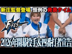NPBファイターズ2026開幕投手発表VTR&四番打者を新庄監督が宣言<F FES 2025 ファイターズファンフェス> 1:名無しさん@お腹いっぱい2025.11.23(Sun) This is description北海道日本ハムファイターズのファン感謝イベント「F FES」が、今年も本拠地のエスコンフィールドHOKKAIDOで開催!『大航海は続く』をチ... 2025.11.23NPB