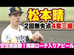 NPB【抜群の安定感】松本晴『2回1安打無失点4奪三振…開幕ローテ入りへ上々の仕上がり見せる!』 1:名無しさん@お腹いっぱい2026.02.14(Sat) This is description2月14日にアイビーで行われた紅白戦。2イニングを投じた松本晴は、低め、コースに素晴らしい投球を見せ、2回1安打無失点4奪三振の投球内容。開... 2026.02.14NPB
