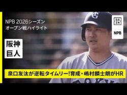 NPB【阪神タイガース×読売ジャイアンツ|ハイライト】2026年3月8日 プロ野球オープン戦 1:名無しさん@お腹いっぱい2026.03.10(Tue) This is description【DAZNは無料でライブやハイライト、番組も楽しめる!】 視聴はこちら⏩️🆚阪神 2-3 巨... 2026.03.10NPB