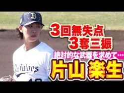 NPB【キレキレ直球】片山楽生『紅白戦で3回無失点3奪三振!一軍定着へ絶好アピール!』 1:名無しさん@お腹いっぱい2026.02.18(Wed) This is description今日行われた紅白戦で3回無失点の好投を見せたオリックス・片山楽生。直球の切れも良く、森友哉からも三振を奪うなど3奪三振の内容!! 一軍定着へ... 2026.02.18NPB