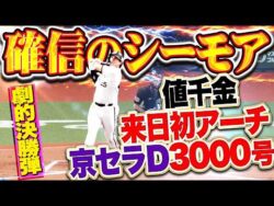 NPB【素晴らシーモア】シーモア『ここで出た来日初アーチ&京セラD通算3000号!!! 漫画みたいな劇的かつ確信の勝ち越し2ラン!!!』 1:名無しさん@お腹いっぱい2026.04.25(Sat) This is description1点を追う展開で迎えた7回。ここまで好投を続けていた伊藤大海をついに捉え、同点に追いついた直後。2死2塁からオリックス・シーモアの変化球を捉... 2026.04.25NPB