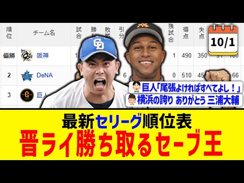 【10月1日】最新セリーグ順位表 ~晋ライ勝ち取るセーブ王~ | プロ野球NPB最新動画ニュース