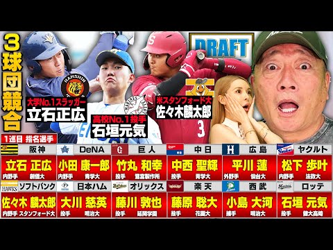 【ドラフト速報】今年の目玉”大学No.1打者”立石正広が3球団競合で阪神へ!!佐々木麟太郎にまさかの2球団指名!!巨人が社会人左腕竹丸投手を一本釣り!!【プロ野球】 | プロ野球NPB最新動画ニュース