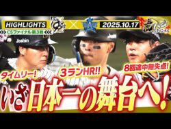 NPB【10月17日 阪神-DeNA ハイライト】CSファイナル第3戦!HRに快投で3連勝!2年ぶりの日本シリーズ進出!! 阪神タイガース密着!応援番組「虎バン」ABCテレビ公式チャンネル 1:名無しさん@お腹いっぱい2025.10.18(Sat) This is description2025年10月17日(金) 阪神-DeNA 甲子園 CSシリーズファイナルステージ第3戦! 3連勝でCS突破! 佐藤輝3ランからの高ス... 2025.10.18NPB