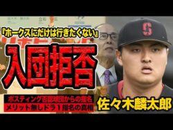 NPB佐々木麟太郎「入団拒否」へ!“メジャーの夢”を阻む「ポスティング否認」球団が“メリット皆無”の強行指名に踏み切った全内幕。会場騒然の指名劇はソフトバンクの「大誤算」となるか【プロ野球】 1:名無しさん@お腹いっぱい2025.10.27(Mon) This is description日本のプロ野球を心から楽しむために最新時事を毎日投稿します。試合情報、選手の裏話、トレードの噂など、ファンが求める話題を独自の視点でしっかり... 2025.10.27NPB