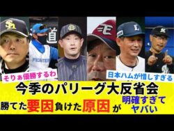 NPB【徹底解説】2025年シーズンのパ・リーグ大反省会!各球団の勝てた要因や下位に沈んだ原因を徹底解説! 1:名無しさん@お腹いっぱい2025.11.16(Sun) This is description#プロ野球 #野球 #ソフトバンクホークス #日本ハムファイターズ #楽天イーグルス #オリックスバファローズ #埼玉西武ライオンズ #千... 2025.11.16NPB