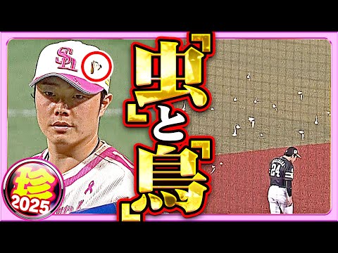 【珍プレー2025】なぜか集まる鳥と虫。どうせなら鳥と虫にもプロ野球を好きになっていただきましょう。今季の試合中に突如襲来した奴らのまとめです。