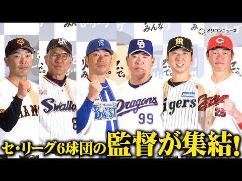3月9日、都内でJERA×セ・リーグ 「灯セ、みんなで。」プロジェクト 記者発表会が行われ、セ・リーグ6球団の監督とQuizKnockの伊沢拓司らが登壇した。