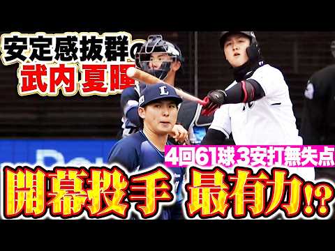 ちょうど2週間後。同じ対戦カード、同じ場所ではじまる2026開幕戦。その前哨戦となった本日の埼玉西武の先発は武内夏暉。初回、先頭打者に少し不運なかたちで出塁を許すも、後続を断ち無失点の立ち上がり。2回、3回と走者を背負いながらも安定感のあるピッチングで無失点で切り抜けると、4回はピシャリと3者凡退!! 4回61球無失点2奪三振の好投となった!! もしかすると、2週間後もまたここで…?
