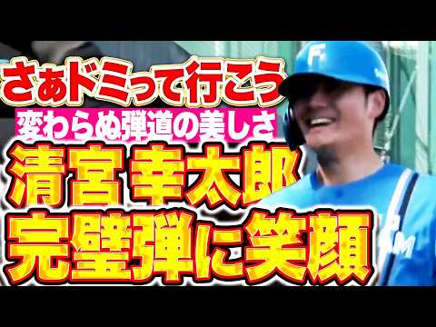 北海道日本ハム・清宮幸太郎がファーム開幕戦に出場。第2打席で内角の球を豪快なスイングで捉えると、打球は悠々フェンスオーバー!! 怪我からの一軍復帰へ大きく前進し、ベンチに戻って笑顔満開🌸 はやく戻ってきて〜〜〜!!