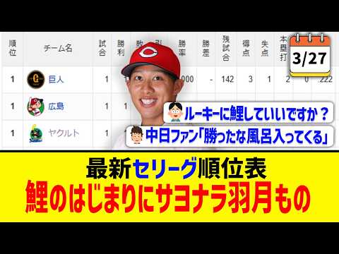 【3月27日】最新セリーグ順位表 ~鯉のはじまりにサヨナラ羽月(はつき)もの~NPBTwitterFacebookはてブPocketLINEコピー 2026.03.281:名無しさん@お腹いっぱい2026.03.28(Sat)This is description#阪神タイガース #読売ジャイアンツ #広島カープ #横浜DeNAベイスターズ #東京ヤクルトスワローズ #中日ドラゴンズ #プロ野球ニュース #ハイライトBGM / えだまめ88様 https://www.youtube.com/@edamaaaaame88