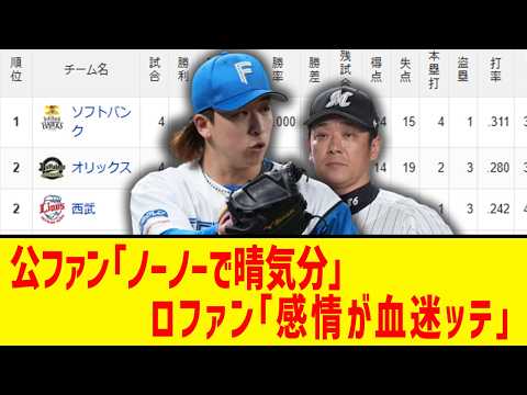 【3月31日】最新パリーグ順位表 ~公ファン「ノーノーで晴気(はるき)分」ロファン「感情が血迷ッテ」~ | プロ野球NPB最新動画ニュース