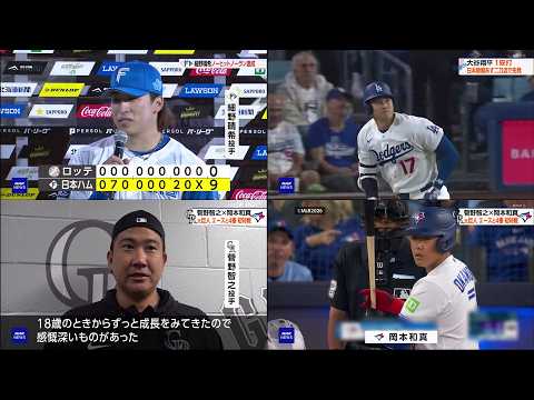 MLBでは、元巨人の菅野智之と岡本和真が初対決。岡本は2試合連続となるホームランを放つもチームは敗戦。一方、ドジャースの佐々木朗希は新球カットボールを武器に好投するも初黒星、大谷翔平は1安打を記録し、次戦での二刀流登板が注目される。