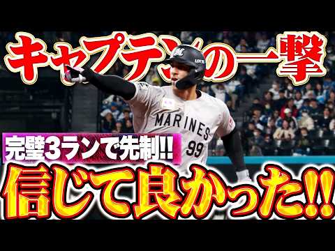 キッズも大人たちも信じた。そして信じてよかった。千葉ロッテ・ソトがストレートを捉え、レフトスタンドへの3ランホームラン!! 2号弾で一気に3点を先制。キャプテンがチームを救う一撃を見舞った!!