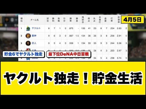 【最新】セリーグ順位表 04月05日現在 | プロ野球NPB最新動画ニュース