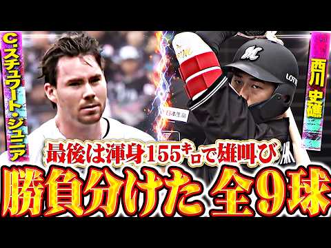 昨日の試合の名勝負。福岡ソフトバンク・C.スチュワート・ジュニアと千葉ロッテ・西川史礁の手に汗握る対戦。4球のファウルなどで西川史礁が粘り、フルカウントとなった9球目。最後は155キロのストレートでC.スチュワート・ジュニアがねじ伏せて雄たけびをあげる!! 火花散る名勝負をお届け。