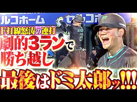 北海道日本ハムが中盤の6回に一気に試合をひっくり返す。先頭の矢澤宏太が安打を放ち、続く水野達稀が続いて無死1,3塁に。ここで奈良間大己がタイムリーを放って同点とし、清宮幸太郎が5号3ランで勝ち越しに成功!! 見事な連打、そしてなまらドミ太郎の連続打でリードを奪い返してみせた。