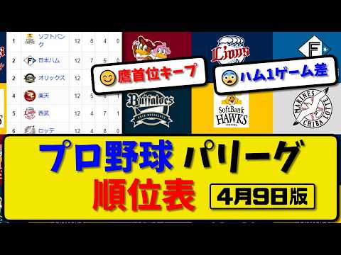 【最新】プロ野球パ・リーグ順位表 4月9日版|楽天2-4ハム|オリ2-1ロッテ|ソフ2-0西武|【まとめ・なんJ・2ch】 | プロ野球NPB最新動画ニュース