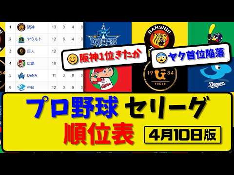 【最新】プロ野球セ・リーグ順位表 4月10日版|巨人3-2ヤク|中日3-5阪神|横浜-中止-広島|【まとめ・なんJ・2ch】NPBTwitterFacebookはてブPocketLINEコピー 2026.04.111:名無しさん@お腹いっぱい2026.04.11(Sat)This is description#順位表 #阪神タイガース #読売ジャイアンツ #広島カープ #横浜DeNAベイスターズ #中日ドラゴンズ #ヤクルトスワローズ #プロ野球