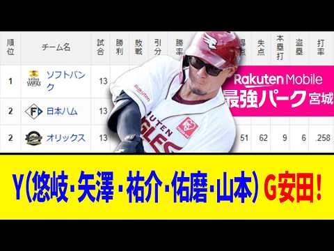 【4月11日】最新パリーグ順位表 ~Y(悠岐・矢澤・祐介・佑磨・山本)G安田!~ | プロ野球NPB最新動画ニュース