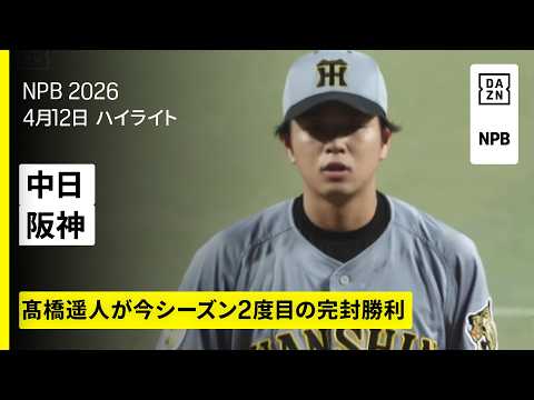 【中日ドラゴンズ×阪神タイガース|高橋遥人が圧巻の完封劇|ハイライト】2026年4月12日 プロ野球 | プロ野球NPB最新動画ニュース