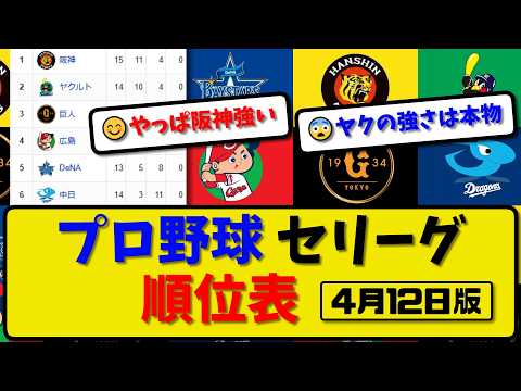 【最新】プロ野球セ・リーグ順位表 4月12日版|中日0-3阪神|巨人0-2ヤク|横浜6-5広島|【まとめ・なんJ・2ch】NPBTwitterFacebookはてブPocketLINEコピー 2026.04.131:名無しさん@お腹いっぱい2026.04.13(Mon)This is description#順位表 #阪神タイガース #読売ジャイアンツ #広島カープ #横浜DeNAベイスターズ #中日ドラゴンズ #ヤクルトスワローズ #プロ野球