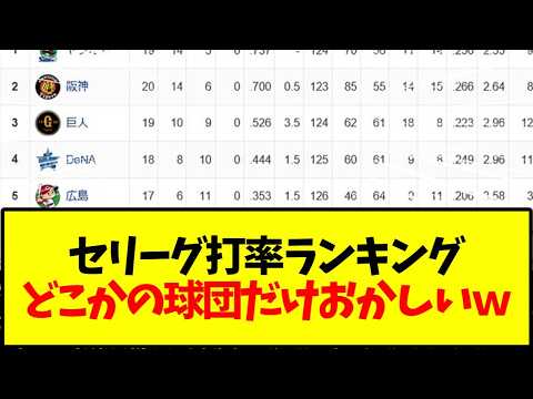 【セ・リーグ】セリーグ打率ランキング どこかの球団だけおかしいwwwNPBTwitterFacebookはてブPocketLINEコピー 2026.04.201:名無しさん@お腹いっぱい2026.04.20(Mon)This is description#セ・リーグ #広島カープ #読売ジャイアンツ #ヤクルトスワローズ #denaベイスターズ #中日ドラゴンズ #阪神タイガース