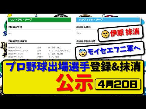 【公示】プロ野球 出場選手登録&抹消 公示4月20日発表|伊原&デュプ&山瀬&丸&増居&モイセ&池田&吉田&水谷&佐藤&藤井&秋山&廣池ら抹消|【最新・まとめ】 | プロ野球NPB最新動画ニュース