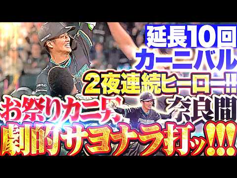 【決めたッ🦀お祭りカニ男】奈良間大己『2夜連続のヒーローッ!!! 持ってる男が執念の劇的サヨナラ打!!!』 | プロ野球NPB最新動画ニュース