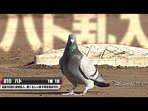 白昼堂々の乱入劇であり、ハト昼ポーポーの犯行劇であった。0対0で迎えた延長10回、10人目の野手としてハト選手が出場。攻撃するわけでも守るわけでもなく、特になにもすることもなく居座った。そしてこの堂々とした表情である。ハムスター好きとしてはこの愛くるしい姿は狂おしいほどの恋心を抱いてしまう。誰にもこの個人目標を伝えたことはないのだが、私はここ3年ほど、『道端にいるハトを驚かせない、急に飛び立たせない』ということを個人目標として生きている。近くを通るときは「ごめんね…通るよぉ…」と言いながら歩いている。変人だと思われても仕方がない。ハトが好きだ。ハムスターも好きだ。そして変人だ。