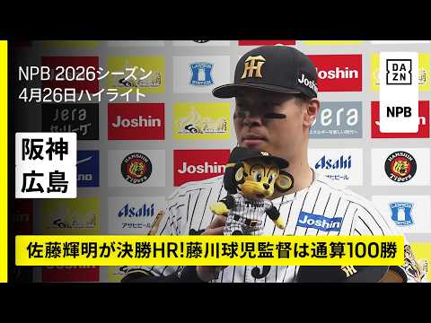 【阪神タイガース×広島東洋カープ|佐藤輝明が決勝HR!藤川球児監督は通算100勝|ハイライト】2026年4月26日 プロ野球 | プロ野球NPB最新動画ニュース