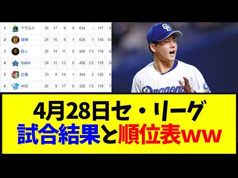 野球 4月28日最新版 セ・リーグ順位表と試合結果www | プロ野球NPB最新動画ニュース