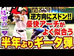 NPB【半年ぶり一発!!!】柳田悠岐『豪快アーチが似合う男…“これぞギータ”な逆方向への今季3号!』 1:名無しさん@お腹いっぱい2025.10.04(Sat) This is description福岡ソフトバンク・柳田悠岐は6回に迎えた第4打席で外角の直球を逆らわずに弾き返し、鋭いライナーで一気にスタンドまで持っていく!! 復帰後初め... 2025.10.04NPB