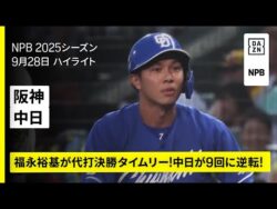 NPB【阪神タイガース×中日ドラゴンズ|ハイライト】代打・福永裕基が逆転打!中日が9回に試合をひっくり返す|2025年9月28日 プロ野球 1:名無しさん@お腹いっぱい2025.09.29(Mon) This is description【DAZNは無料でライブやハイライト、番組も楽しめる!】 視聴はこちら⏩️🆚阪神 2-4 中... 2025.09.29NPB