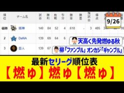 NPB【9月26日】最新セリーグ順位表 ~【燃ゆ】燃ゆ【燃ゆ】~ 1:名無しさん@お腹いっぱい2025.09.27(Sat) This is description#阪神タイガース #読売ジャイアンツ #広島カープ #横浜DeNAベイスターズ #東京ヤクルトスワローズ #中日ドラゴンズ #プロ野球ニュー... 2025.09.27NPB