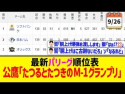 NPB【9月26日】最新パリーグ順位表 ~公鷹「たつるとたつきのM-1グランプリ」~ 1:名無しさん@お腹いっぱい2025.09.27(Sat) This is description「だーれだ」は閉店しました。事情は察してください・・・ ◆WBC映画『憧れを超えた侍たち 世界一への記録』 #パリーグ #パリーグTV... 2025.09.27NPB
