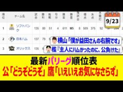 NPB【9月23日】最新パリーグ順位表 ~公「どうぞどうぞ」鷹「いえいえお気になさらず」~ 1:名無しさん@お腹いっぱい2025.09.24(Wed) This is description◆WBC映画『憧れを超えた侍たち 世界一への記録』 #パリーグ #パリーグTV #パシフィックリーグ #プロ野球ニュース #なんJ #ハ... 2025.09.24NPB