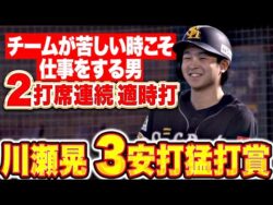 NPB【2打席連続タイムリー】川瀬晃『チームが苦しい時こそ仕事をやってのける…勝利に貢献する猛打賞!』 1:名無しさん@お腹いっぱい2025.09.25(Thu) This is description福岡ソフトバンク・川瀬晃は2打席連続のタイムリーを含む3安打の活躍!! 勝負強さをみせたライトへのタイムリーヒットに、センターへ弾き返したタ... 2025.09.25NPB