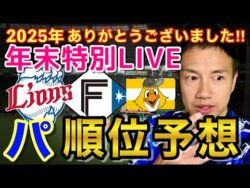 NPB【2026順位予想】パリーグを語る年忘れライブ!王者ソフトバンクに待ったをかける日本ハム、西武! 1:名無しさん@お腹いっぱい2025.12.29(Mon) This is description全国の西武ライオンズファンと一緒に、西武ライオンズを応援していく番組です! -------------------------------... 2025.12.29NPB