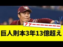 【お笑い】巨人則本3年13億超え【プロ野球反応集】【2chスレ】【なんG】