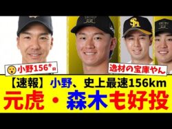 NPB【プロ野球トライアウト】元オリックス・小野泰己が史上最速156キロで覚醒!元阪神ドラ1森木大智も149キロ&ツーシームで好投し、復活をアピール!【プロ野球ファンの反応】 1:名無しさん@お腹いっぱい2025.11.12(Wed) This is description11月12日に行われたプロ野球トライアウトで、前オリックスの小野泰己投手が史上最速となる156キロを記録! さらに前阪神ドラ1の森木大智投手... 2025.11.12NPB