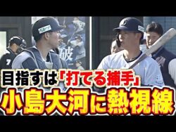 NPB【降り注ぐ熱視線】ドラ1ルーキー小島大河『隅田の球を受けて笑顔→フリー打撃で快音響かせる』 1:名無しさん@お腹いっぱい2026.02.01(Sun) This is description埼玉西武のドラフト1位ルーキー・小島大河がキャンプ初日から躍動。ブルペンでは隅田知一郎とさっそくバッテリーを組み、打撃では監督が見守るなかで... 2026.02.01NPB