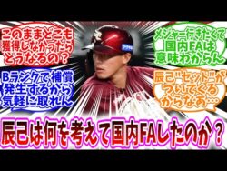 NPB【プロ野球反応集】「辰己は何を考えて国内FAしたのか?」に対する野球民の反応集/このままどこも獲得しなかったらどうなるの?/メジャー行きたくて国内FAは意味わからん/Bランクで補償有やから気軽に取れん 1:名無しさん@お腹いっぱい2025.12.11(Thu) This is description【プロ野球反応集】 「辰己は何を考えて国内FAしたのか?」 この疑問に対する野球民の率直すぎる反応を まとめました。 今季... 2025.12.11NPB
