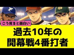NPBプロ野球12球団別、過去10年間(2016~2025)の開幕4番打者まとめ 1:名無しさん@お腹いっぱい2026.01.30(Fri) This is descriptionご視聴ありがとうございます。プロ野球をはじめとした野球に関連する情報をお伝えしています。 よろしければチャンネル登録・高評価よろしくお願いし... 2026.01.30NPB